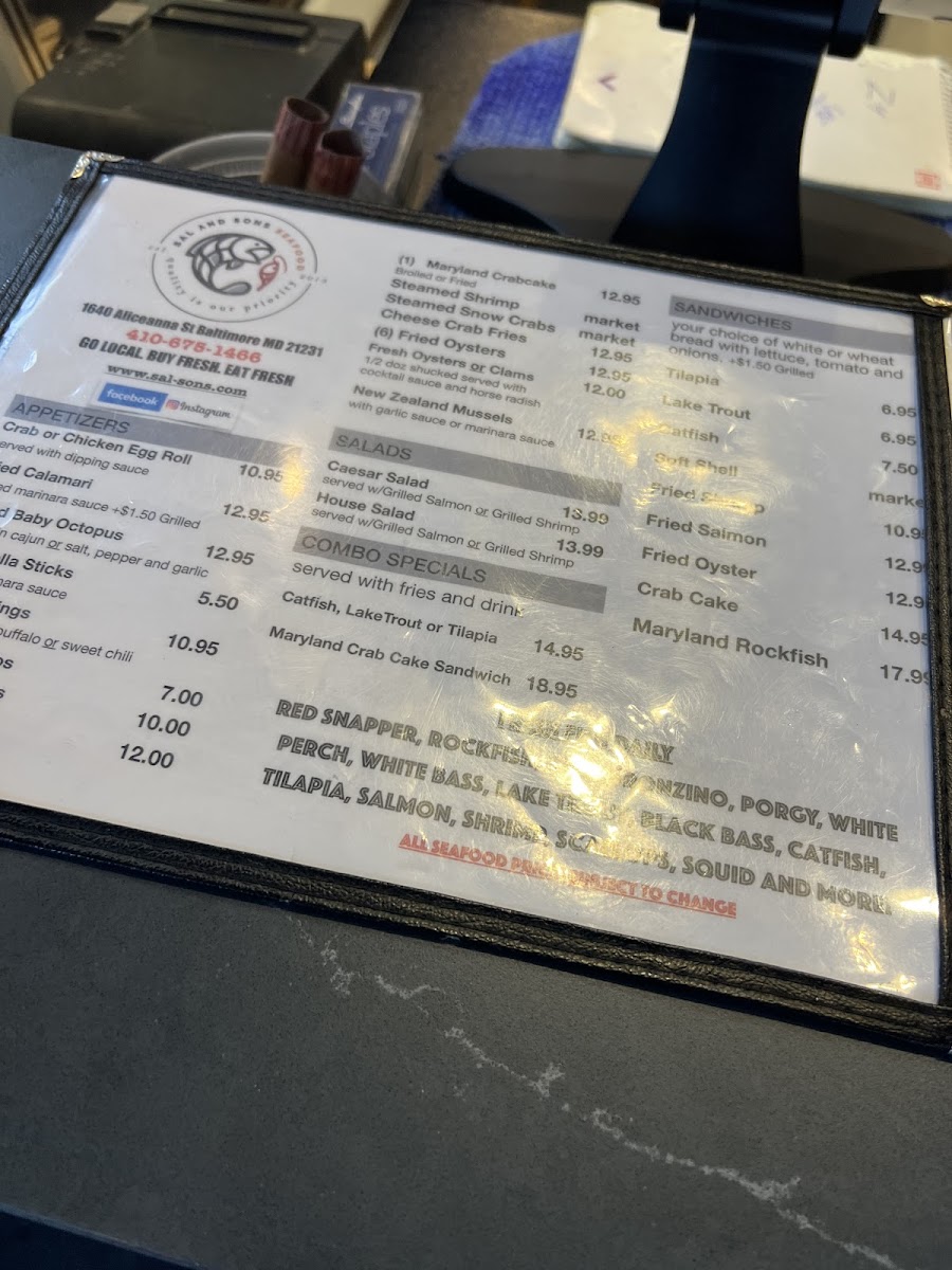 Sal & Son's Seafood Inc Menu